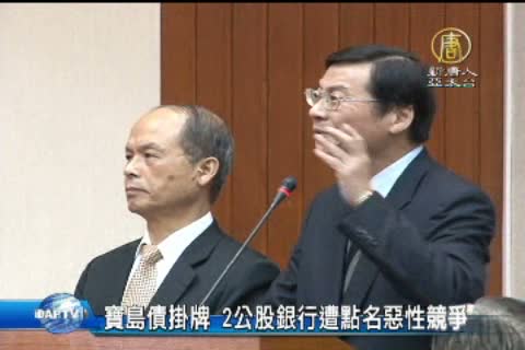 【新唐人亞太台2013年12月10日訊】大陸銀行來台發行寶島債,今天正式掛牌上櫃,承銷的兩家公股銀行卻被金管會點名殺價競爭,而民進黨團今天也痛批,開放大陸銀行來台發債是「吸金兼吃豆腐」,而且用「島內」稱呼台灣,已經是嚴重矮化主權。
