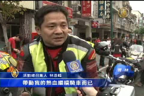 活動總召集人 林添峰:「我從92年正式開始騎有牌車到現在,已經十年了,已經騎了,在台灣島上騎了22萬公里,其實我的動力是在於我一直帶新手上來,每批新手的熱血帶動我的熱血繼續騎車。」