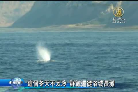 【新唐人亞太台2013年12月15日訊】位於洛杉磯南部的長灘海域風平浪靜、水溫適宜,一直是各種海洋生物理想的棲息地。這個冬天,溫暖長灘海域迎來了特殊的客人,長鬚鯨。