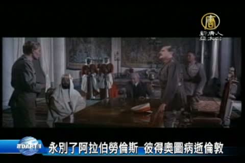 【新唐人亞太台2013年12月16日訊】愛爾蘭裔演技派男星彼得奧圖的經紀人肯尼斯證實,彼得奧圖14號病逝倫敦,享年81歲,他曾以1962年的電影《阿拉伯的勞倫斯》享譽全球。