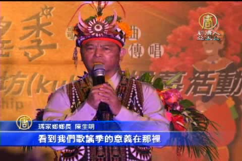 【新唐人亞太台2013年12月16日訊】台灣原住民的歌聲,常讓國際人士驚豔。為了讓傳統原民歌謠不流失,屏東縣瑪家鄉公所幾乎每年的歲末年終都會舉辦歌謠季,讓部落族人及民眾透過歌聲,了解原住民文化。