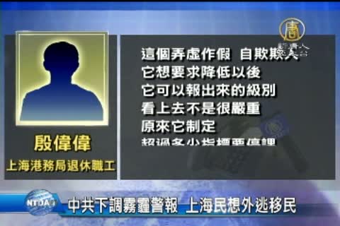 【新唐人亞太台2013年12月17日訊】中共當局治理霧霾無能為力,竟做出一項「掩耳盜鈴」之舉,上調霧霾警報的指數水平,以減少警報次數,不過,越來越多中國精英階層已經決定,移民海外避難 。