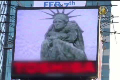 時代廣場上的自由女神都忍不住這寒冷的天氣,瑟瑟發抖。