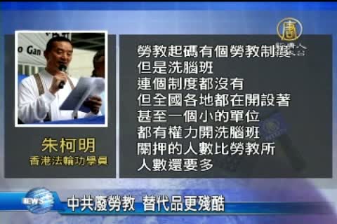 香港法輪功學員 朱柯明:「勞教起碼有個勞教制度,但是洗腦班,連個制度都沒有,但全國各地都在開設著,甚至一個小的單位都有權力開洗腦班,關押的人數比勞教所人數還要多。他不用任何的申請批報,就給你抓進洗腦班,強制轉化你,強制給你施行任何外人都不知道的酷刑,洗腦班比勞教制度嚴重的多。」