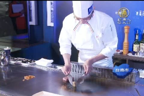 煎著吱吱作響的牛肋眼,最後再將鴨肝放在切好的肋眼牛排上,一道鴨肝牛肋眼就此完成。