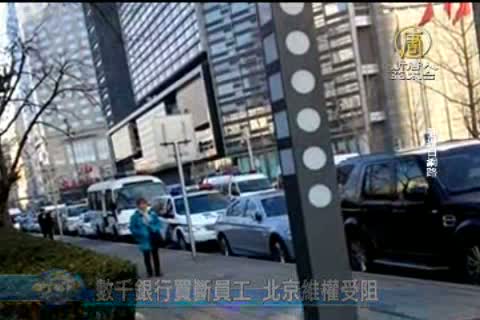 【新唐人亞太台2013年12月24日訊】來自中國各地被四大銀行強制買斷工齡的三千失業員工,23號到北京銀監會上訪,中共當局動用大批公安、便衣進行截訪,3百多人被關進「久敬莊」黑監獄,部分人已押回當地。今天(24號)上午,再有一千多買斷員工聚集中紀委和信訪局,要求解決生活問題。