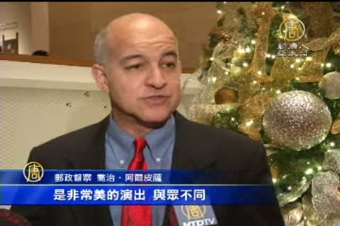 2015-01-12 16:28:15關心神韻藝術團全球巡迴演出的最新消息,1月10日晚,神韻在德州達拉斯的第三場演出圓滿落幕,不少當地政要名流到場欣賞。其中包括,對中華傳統文化深有研究的甘特市市長。