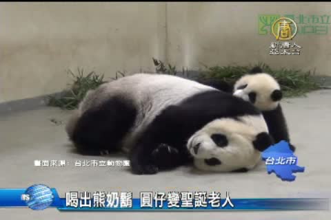 【新唐人亞太台2013年12月25日訊】今天就是聖誕節了,動物園也應景的放上圓仔喝母奶的畫面,剛剛喝完母奶的圓仔,嘴上還有一整圈熊奶,就像是聖誕老公公的鬍子。出生已經172天的圓仔,體重已經突破12公斤,動物園預計1月6日,就要讓圓仔跟民眾見面,現在要先讓圓仔適應見客的新場地。