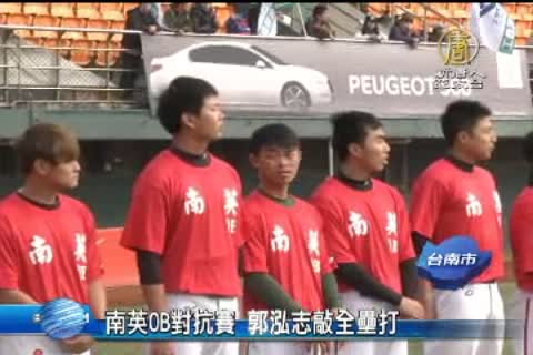 【新唐人亞太台2013年12月28日訊】第三屆台南南英青棒OB對抗賽今天在台南市立棒球場進行,比賽分成分成紅白兩隊,包括郭泓志、胡金龍、旅外球星林哲瑄、中職年度選秀狀元鄭凱文等人都到場參加,郭泓志以野手身分出賽,第一局就擊出全壘打,受到現場球迷歡呼。