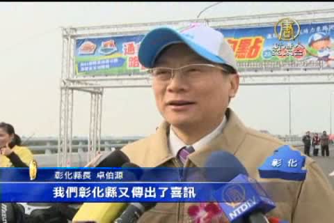 彰化縣長 卓伯源:「102年的末端我們彰化縣又傳出了喜訊,就是民眾期待很久的西濱道路,從我們的漢?到王功這一段,已經完工通車,將來這30公里完成以後,可以讓台灣西部的交通幹線更加的便利,也可以帶動我們彰化西部鄉鎮的進步跟發展。」