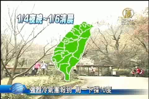 【新唐人亞太台2014年1月4日訊】繼續要來告訴您。這幾天短暫的溫暖好天氣又告一段落了。 強烈冷氣團報到,今天入夜之後會越來越冷,到下週一清晨,嘉義以北到宜蘭沿海空曠地區,甚至有機會下探10度。不過,就是因為天氣冷,陽明山櫻花搶先綻放,台北市政府還設「賞櫻專頁」,每週更新預測花況,還幫忙整理出十大賞櫻地點,讓民眾賞櫻花更加方便。
