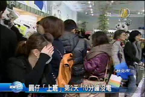 【新唐人亞太台2014年1月7日訊】貓熊寶寶圓仔公開亮相的第2天,還是有民眾清晨6點,就到動物園前排隊,不過參觀人潮跟昨天相比,已經減少,圓仔今天的活動力,也不如昨天,開館才10分鐘,牠就電力耗盡,睡著了。
