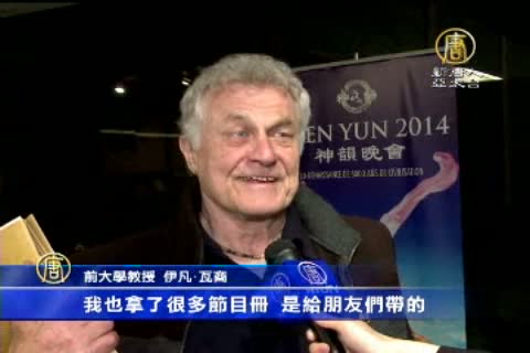 前大學教授 伊凡 瓦商(Yvon Vachon):「我已經是第四次看神韻了,每次都會有耳目一新的感覺。我也拿了很多節目冊,是給朋友們帶的。因為我覺得真的是非比尋常。祝賀神韻!」