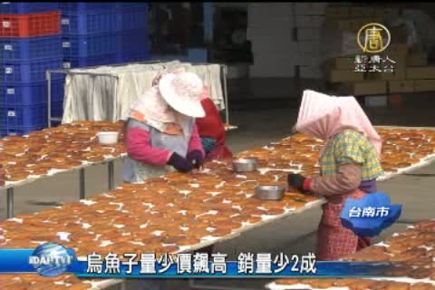 【新唐人亞太台2014年1月9日訊】年節常見食材,烏魚子;今年受捕撈、養殖數量減少,加上大陸需求量增加影響,價格比去年漲1至2成,業者透露,這也連帶讓烏魚子銷量,約比往年減少了2成。