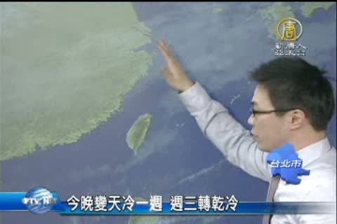 【新唐人亞太台2014年1月12日訊】週日下半天開始變天,受到強烈大陸冷氣團南下的影響,週日晚上除了越晚越冷,週三前全台也將轉為濕濕冷冷的天氣,高山地區有機會降雪,到週三會最冷,不過也開始轉為乾冷的天氣型態,一直要到下週六,天氣才會回暖。