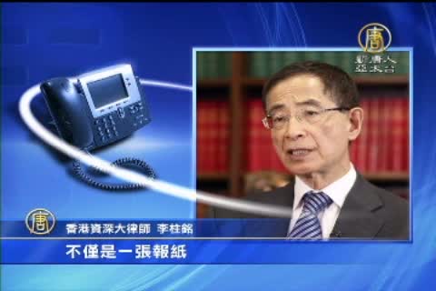 香港資深大律師 李柱銘:「不僅是一張報紙,而是一連串的行動,令到市民覺得很明顯共產黨就是要控制香港,新聞自由一定要壓抑,所以我覺得這是香港人的事,我們大家不可以袖手旁觀。」