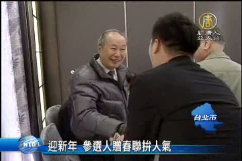 【新唐人亞太台2014年1月19日訊】2014大選,台北市議員選舉競爭非常激烈,第一次參選的前民進黨發言人王閔生,印製一元福袋紅包,準備在過年期間拜票衝人氣,而同樣是政壇新鮮人的,還有連勝文的特助徐弘庭,也印製了10萬份春聯準備發送給選民,而已經是資深輩的民進黨市議員張茂楠,則秀出拿手絕活,在早市擺攤親自寫春聯。