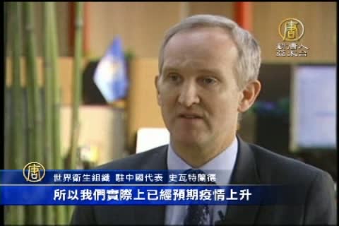【新唐人亞太台2014年1月23日訊】新聞一開始,先帶您關心,大陸H7N9禽流感疫情,持續在多省升溫,目前至少奪走了58條人命。世界衛生組織駐中國代表史瓦特蘭德警告,冬天是流感爆發的旺季,加上過年期間,中國人口大範圍流動,屠宰量增,恐增加疫情的嚴重度。