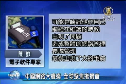 旅居東南亞的電子軟件專家陳帥分析,《騰訊》公司具有軍方背景,之前每次網路出現大的問題時,《騰訊》的QQ同樣可以登錄。這次連QQ都出現了問題,可能有兩種原因。