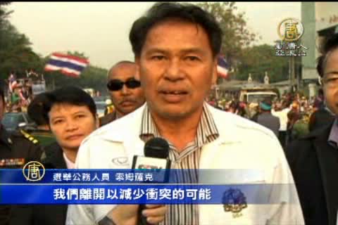 【新唐人亞太台2014年1月26日訊】而在國際消息方面,泰國持續數週以來的反對派遊行持續增溫,總理盈拉為了化解緊張局勢,宣布2月2日舉行大選。為了服務當天無法投票的選民,特別開放預先登記的選民在今天(26號)提前投票。反政府示威群眾包圍投票所,導致部分投票所關閉。而泰國警方表示,曼谷反政府示威今天再度爆發衝突,造成1名示威領袖中彈身亡,並有一些人受傷 。