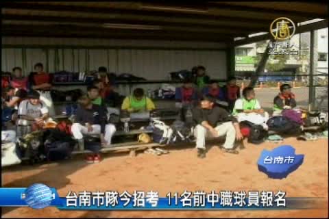 【新唐人亞太台2014年1月28日訊】台南市成棒隊即將成立,今天舉辦的測試會,共有82人參加,其中還包括前義大犀牛球員沈福仁,以及改名陽卓勳的前職棒球員陽森等11名前中職選手報名,一起投入搶飯碗行列,雖然薪資只有3.5~6萬,球員們說,不會在乎,只希望能有舞台讓他們發揮球技。
