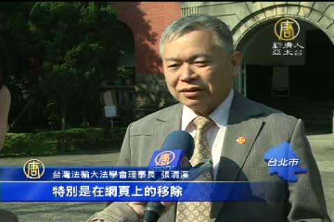 台灣法輪大法學會理事長 張清溪:「引起一般人對法輪功的仇恨上,他(愛國同心會)事實上是全面性地希望挑撥離間,希望製造一些衝突,很高興說,法院在這方面,有比較好的這個判決,但是我們希望還要更強一點,特別是在網頁上的移除,我認為應該更全面性。」