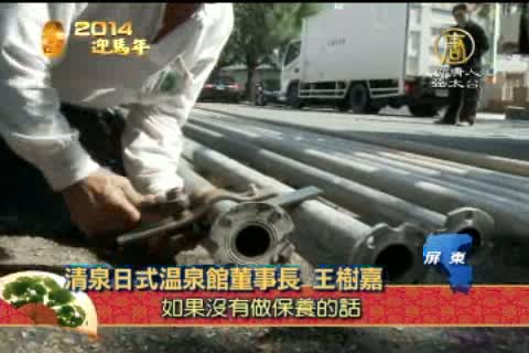 清泉日式溫泉館董事長 王樹嘉 :「舊的馬達就吊起來做保養,這就維繫在整個運作上的正常。高溫的馬達長期在地下的話,如果沒有做保養的話,它的功能就會產生一些故障。」