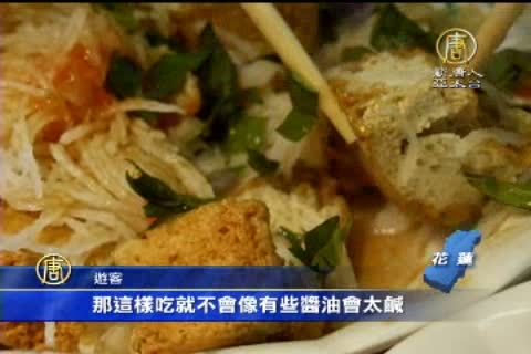 遊客:「那這樣吃,就不會像有些醬油會太鹹,死鹹那樣,因為它有泡菜蘿蔔絲跟九層塔,如果吃泡菜的話,鹹中帶有一點酸的感覺,就不會一直有很鹹的味道。」