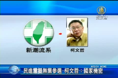 【新唐人亞太台2014年2月6日訊】有意爭取代表綠營參選台北市長的柯文哲今天到國際書展舉辦新書座談會,但外界最關注的還是台北市長選情。有消息指出,柯文哲可能以無黨籍身分參選台北市長,並且已獲得民進黨新潮流系、謝系力挺。到底是不是真有此事?柯文哲今天用「國家機密」回應。