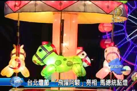 【新唐人亞太台2014年2月7日訊】下個星期就是元宵節了,台北燈節的主燈「飛躍阿駿」,今天正式與民眾見面了,總統馬英九與行政院長江宜樺也在晚間七點半親自主持點燈儀式,帶您看到稍早傳回來的畫面。
