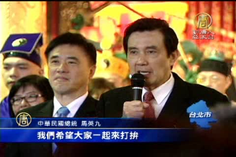 【新唐人亞太台2014年2月8日訊】鏡頭轉回台灣,今天是大年初九,同時也是玉皇大帝的生日,總統馬英九照例到台北木柵指南宮參拜,同時也再度向民眾喊話,強調今年景氣不錯,政府會全力拚經濟,不過,指南宮旁的攤商說,雖然拜拜的人多了,但是願意掏錢的人卻很少,還是對今年的經濟景氣,沒有信心。