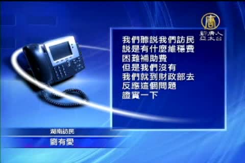 湖南訪民 劉有愛:「我們聽說我們訪民有什麼維穩費、困難補助費,但是我們沒有,我們就到財政部去反應這個問題,證實一下。」