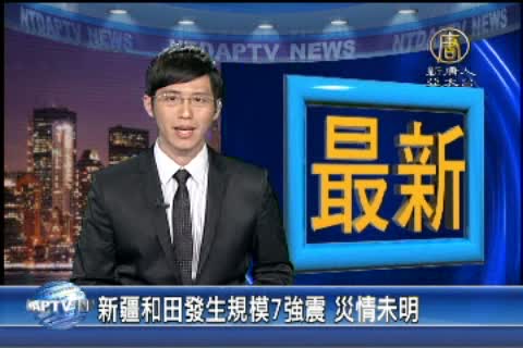 【新唐人亞太台2014年2月12日訊】新華社發布快訊,大陸新疆維吾爾自治區和田地區于田縣附近,今天下午五點19分,發生規模7.0地震。震央位於北緯36.2度、東經82.5度。消息傳開後,中國地震臺網稍早發布地震訊息,地震規模為7.3,震源深度12公里,屬於淺層地震。目前當地還沒有進一步的傷亡消息傳出。