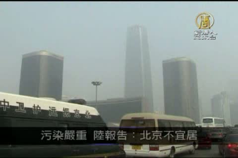 上海社會科學院發布「2014國際城市藍皮書」指出,中國大陸首都北京的生態指標在受調查的40個城市中排名倒數第二,北京的環境污染嚴重程度,已達「不適合人類居住」程度。只比莫斯科好,不過,報告稱,莫斯科最後一名是因嚴酷寒冷和漫長冬季的自然環境影響。