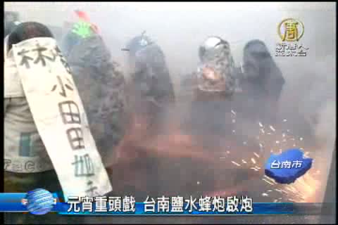 【新唐人亞太台2014年2月13日訊】元宵節南台灣的重頭戲,台南鹽水蜂炮,上午正式啟炮。不過,受到寒流和下雨的雙重影響,鞭炮被打濕,導致啟炮儀式點了四次才將炮火引燃。由於這次元宵節沒放假,加上遇上西洋情人節,又下雨,第一天感覺遊客少了很多。