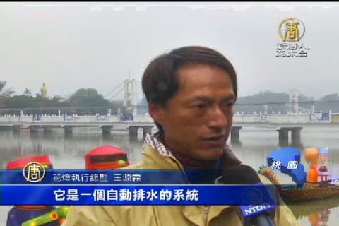 花燈執行總監 王源霖:「這個是我們台灣的首創,它是凹空的,所以下雨像我們這幾天下雨,那水都愈來愈滿愈來愈滿,那當然我們也加裝了一些小的機關,它是一個自動排水的系統,。」
