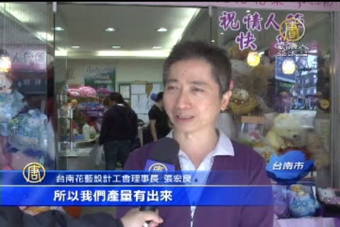 台南花藝設計工會理事長 張宏良:「巧克力花束,占了百分之三十左右,巧克力還有玩偶,玩偶以凱蒂貓、小叮噹、米奇、史迪奇,(花束)朵數以十一朵以上,十一朵是我們唯一的愛,所以十一朵接受度最高。」