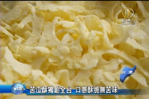 【新唐人亞太台2014年2月21日訊】常聽到地瓜酥、芋頭酥,但觀眾朋友有聽過苦瓜酥嗎?在台東有家業者,為了挑戰消費者的味蕾,獨家研發口感酥脆的苦瓜酥,加上特製的調味粉,吃起來一點苦味也沒有,讓我們透過鏡頭帶你一同來品嚐。