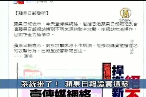 壹傳媒網絡今日下午遭駭客攻擊,香港及台灣蘋果日報網站系統均未能正常提供服務,港台網站大當機已經超過三小時,香港蘋果日報在臉書上表示,目前現正搶修,暫未完全恢復正常,蘋果已證實系統「掛了」,導致無法正常登錄,蘋果編輯還因此發布KUSO照,下跪向讀者道歉。