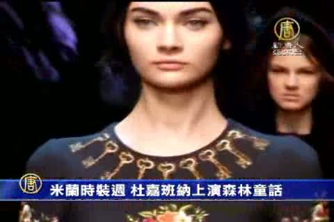 【新唐人亞太台2014年2月25日訊】23號,義大利設計師杜嘉班納(Dolce & Gabbana)2014秋冬大秀在米蘭華麗上演。以浪漫的西西里為靈感,用森林場景的佈置將觀眾帶入童話般的世界。而高端奢侈品牌阿瑪尼則推出了以灰色和綠色為主的秋冬女裝青春系列,延續其一貫的高雅路線 。