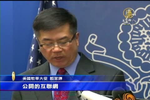 美國駐華大使駱家輝:「我們還希望看到中國為外國記者提供更好,更公平的待遇,給他們自由,以進行誠實坦率的報導,就像中國記者在美國享受到的這些自由一樣。」
