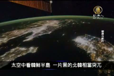 太空中看韓鮮半島,一片黑的北韓相當突兀