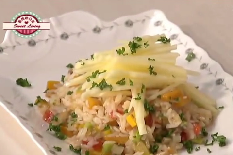 8. 盛盤後擺上蘋果絲,撒上巴西里,即是一道美味的佳餚。