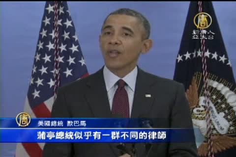 美國總統 歐巴馬:「蒲亭總統似乎有一群不同的律師,做出不同的解釋,但是我認為那愚弄不了任何人。」