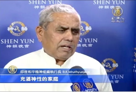 印度和平精神組織執行長 B.K.Mruthyunjaya:「她(神韻)能將人類社會形成一個整體,讓世上的每個人心中感到祥和及慈愛,也能打破很多隔閡,文化上的隔閡、政治上的隔閡、種種這麼多的隔閡,她能將全人類合成一個大家庭,充滿神性的家庭。」