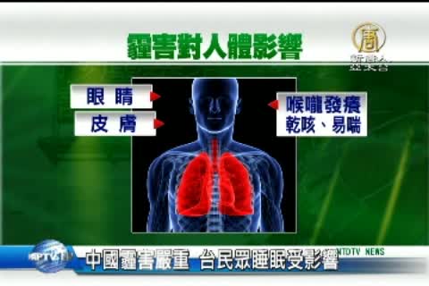 【新唐人亞太台2014年3月10日訊】近期中國霾害愈來愈嚴重,經常伴隨寒流或冷氣團南下襲台,醫師今天指出,霾害中的懸浮微粒,不僅威脅呼吸道與造成肺部疾病,也間接影響民眾的睡眠品質。