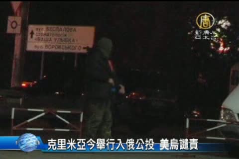 【新唐人亞太台2014年3月16日訊】克里米亞在台灣時間今天(16日)下午兩點舉行入俄公投,開放投票時間長達12小時,預期將以多數票通過脫離烏克蘭,加入俄羅斯。烏克蘭臨時政府與西方社會譴責,這是一場「非法」公投。