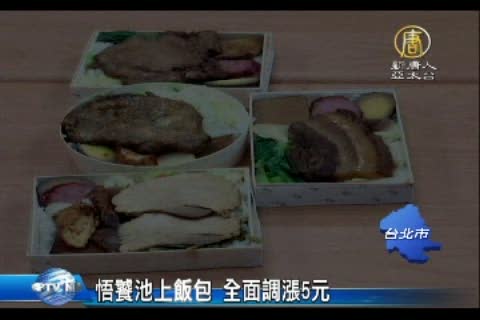 【新唐人亞太台2014年3月18日訊】受到豬雞價格上漲影響,全台有220間加盟店的悟饕池上飯包,宣布要漲價了!只要用到雞肉和豬肉的便當,全面調漲5元,雖然總公司說便當一定100元有找,但是部分門市因為營運成本高,現在雞腿便當定價已經95元,再漲個5元, 等於要100元。