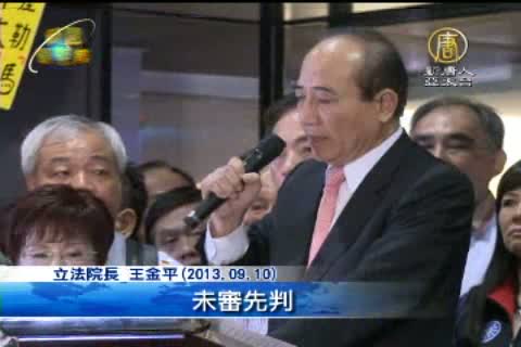 立法院長 王金平:「特偵組在未有本人說明的情況下,片面認定事實,趁本人出國的期間,召開記者會,未審先判,根本違反程序正義,特偵組實屬濫權。」