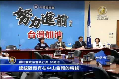 國民黨政策會執行長 林鴻池:「總統確實有在中山會報的時候,他有特別提到,兩岸服貿協議,非常非常重要,我們的生死關頭,但是拖了這麼久,我身為一個執行長,他當然下達指令。他用詞不一定就如報紙媒體上那些字,不過,他是非常的急。」